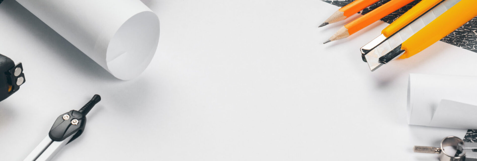 Architect working with blueprints for sketching a construction project, green energy and solar panel concept.